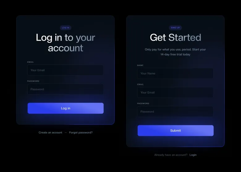The template does not include any code for signing up, logging in, creating an account, or forgot a password.